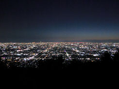 酷暑のなか、数名の辞退者が出ましたが、29名の参加者と、中部チームのスタッフが、17時30分に枚岡神社鳥居前を出発いたしました。夕方とはいえ、まだまだ太陽は高く、日中の暑さがしっかりと残っており、歩き出してからすぐに汗が噴き出てきました。ゆっくりとしたペースでまずは枚岡展望台、神津嶽、神津嶽ふれあい広場を経由して、ちょうど日没直前にみはらし展望台に到着しました。神津嶽ふれあい広場までの途中で、参加者の半数ほどで、神津嶽の枚岡神社創始の地を訪れ、紀元前600年頃にさかのぼると伝えられる神社の歴史に思いを馳せました。みはらし展望台のデッキで、事前に準備しておいたコーヒーなどの飲み物、アイス、おやつを参加者に配り、しばし夕日が西の山の端に沈んでいく光景を楽しみました。夕日が沈み、眼下に明かりが灯った大阪平野の夜景(これは絶景です)を見ながら、中部チームのスタッフによるオカリナ演奏を楽しみました。演奏が終わってからしばらく微妙に変化していく夜景を楽しみ8時前に下山しようとしたところ、思いがけなく、万博会場での花火を遠くに見ることができました。遠くの花火を少しだけ楽しんで下山を開始し、らくらくセンターハウス経由で21時過ぎに瓢箪山駅に到着、解散いたしました。事故もなく、イベントを終えることができ、スタッフ一同、ほっといたしました。